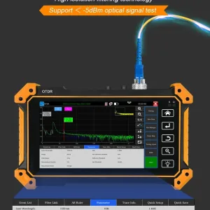 The MOT-51 series OTDR fiber tester combines multiple functions like an optical power meter, visual fault locator (VFL), and cable tester into one efficient device. Its 5.55-inch OLED touch screen provides high-definition visuals, making it easy to analyze fiber optic data. The OTDR supports multiple wavelengths (1310/1550/1610nm) with a dynamic range of up to 100KM, ensuring comprehensive testing of fiber length, loss, and fusion points. Users can save over 30,000 test curves and generate reports for easy documentation. In addition, its cable tester supports various types of cables, including UTP and telephone lines, with precise fault detection and length measurements.