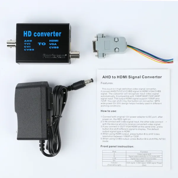 4-in-1 video signal converter,AHD to HDMI converter,TVI CVI CVBS to HDMI VGA output,1080P HDMI video converter for security systems,PAL/NTSC analog signal converter,AHD TVI CVI to digital video converter,Security camera signal converter,Multi-format video converter for surveillance,Wide voltage range video converter,Analog to digital video signal converter for CCTV
